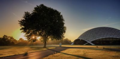 De bolvormige constructie van ‘De Koepel’ is zelfdragend en extra stijf. Hierdoor zijn pilaren overbodig en komen de auto’s die in de koepel staan het best tot hun recht.