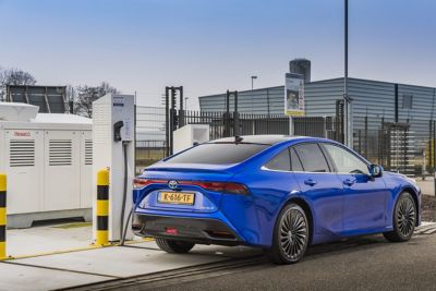 Waar kunt u waterstof tanken in Nederland? Dat is een vraag die veel wordt gesteld omdat er op dit moment nog weinig stations zijn waar waterstof getankt kan worden. Daarom heeft Toyota samen met Resato International een oplossing ontwikkeld, waarmee u een waterstofvulpunt bij uw eigen bedrijf kunt realiseren. Tanken gaat wat langzamer dan bij een openbaar vulstation. Binnen 10 minuten heeft u met uw Mirai een rijbereik van 100 kilometer. Volledig vol tanken lukt binnen een 1 uur. Als de auto toch bij het bedrijf geparkeerd staat, is dat snel genoeg.