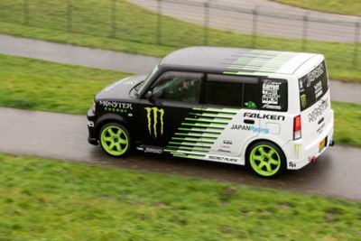 Met zijn opvallende stickers, fluorescerend groene wielen en bodykit ziet de bB van Robin er snel uit, maar dat is hij niet, zegt Robin zelf. “Er ligt een 1.5 benzinemotor van de Toyota Yaris in, met 110 pk. Ik heb een turbo laten monteren – vandaar de turbodrukmeter op het dashboard –, maar dat heeft alleen maar een hoop ellende opgeleverd. De koeling was vergeten en de motor liep in de soep. Ik heb twee jaar niet kunnen rijden. De turbo heb ik laten verwijderen. Vandaar dat je de bB goed hoort aankomen, een turbo dempt het motorgeluid.”