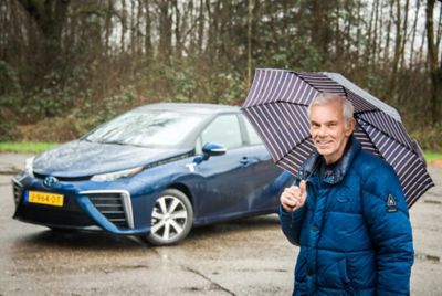 Al zijn hele leven is Jos een groot autoliefhebber en vooral de techniek heeft hem altijd gefascineerd. Zijn hele leven lang had hij ‘hobbyauto’s’ in allerlei soorten en maten, waar hij buiten werktijd aan sleutelde. Dat heeft hem geholpen om moeilijke momenten uit zijn werk als politieman even te vergeten. De aantrekkingskracht van de nieuwe, vooruitstrevende techniek van de Toyota Mirai en zijn eigen milieubewustzijn maakten dat hij in 2020 de stap waagde. Hij verkocht zijn hobbyauto’s en besloot op waterstof te gaan rijden: uitstootvrij, een volwassen actieradius.